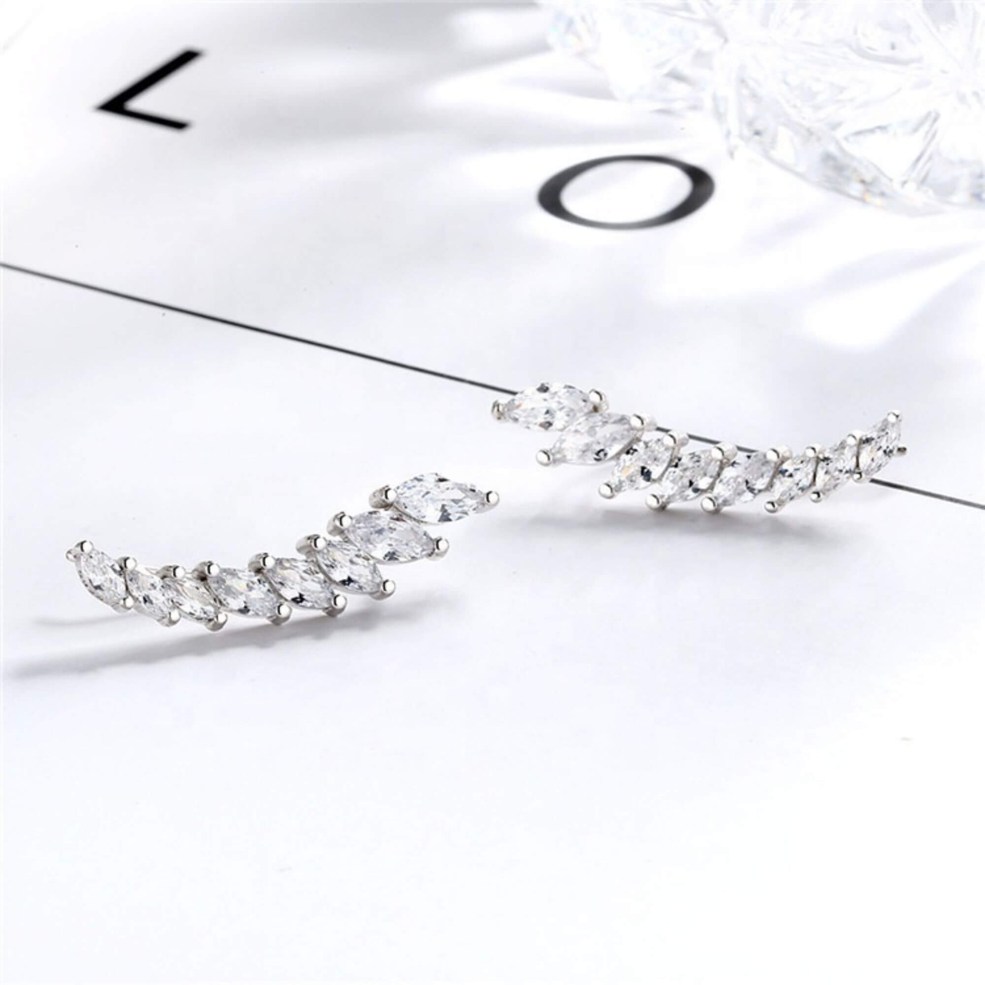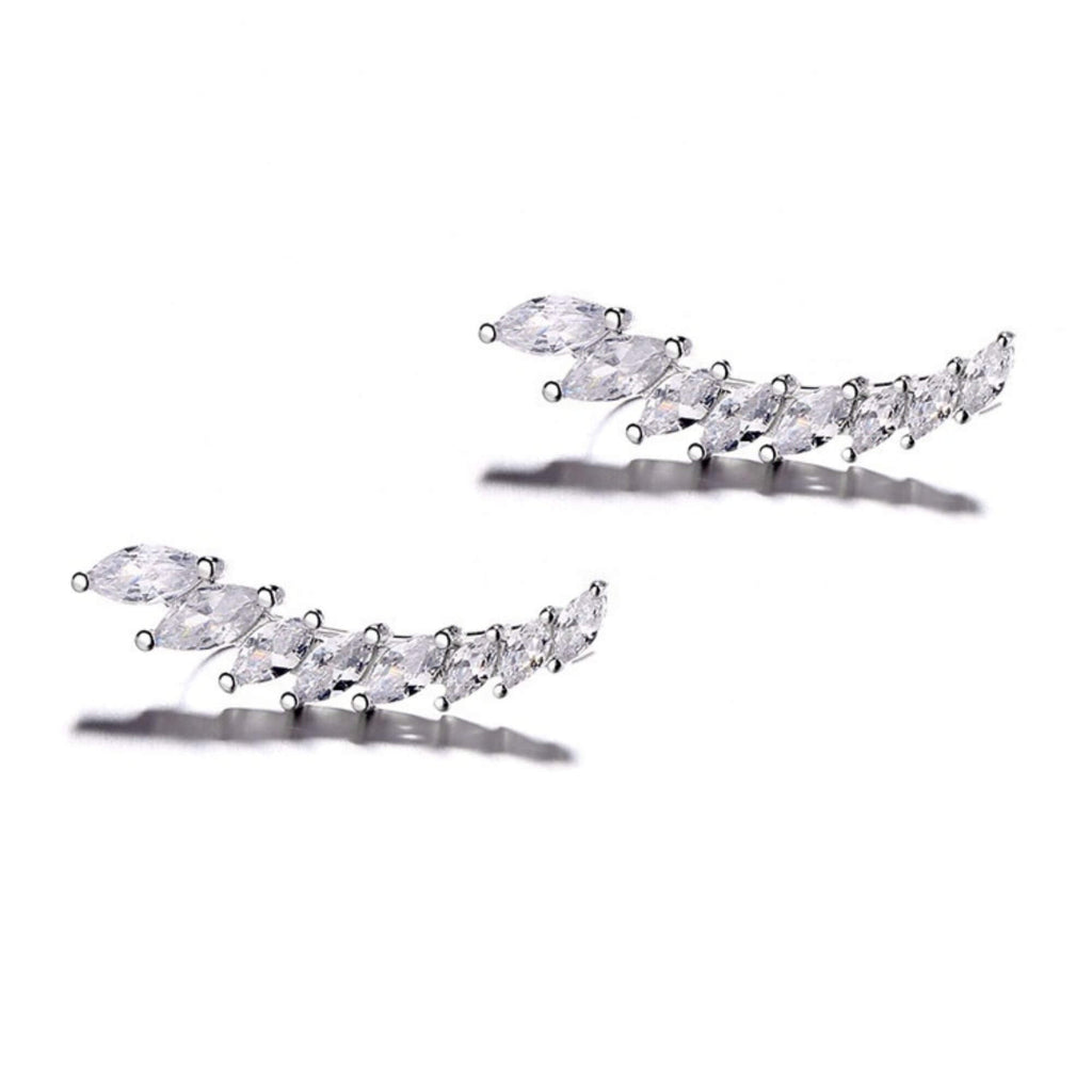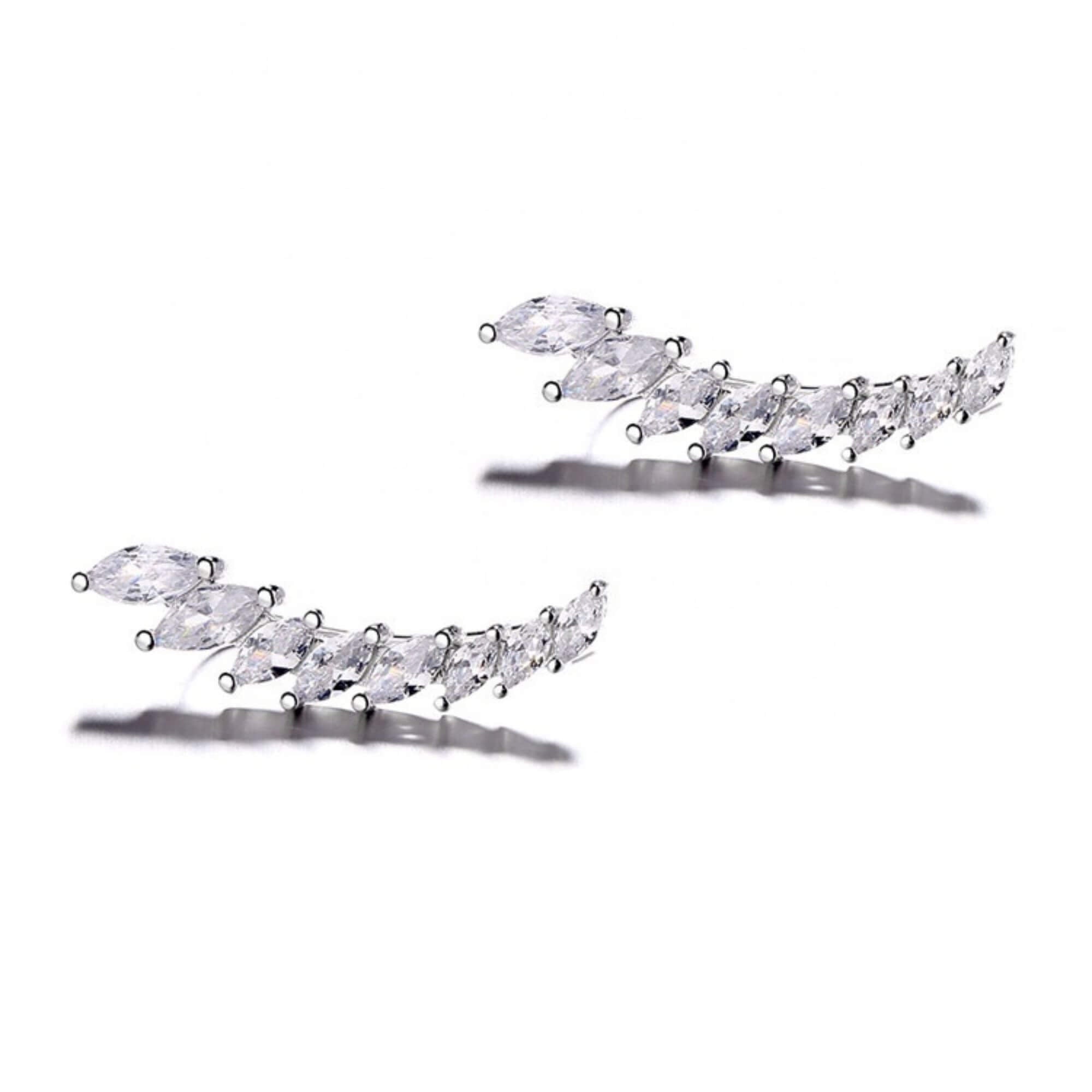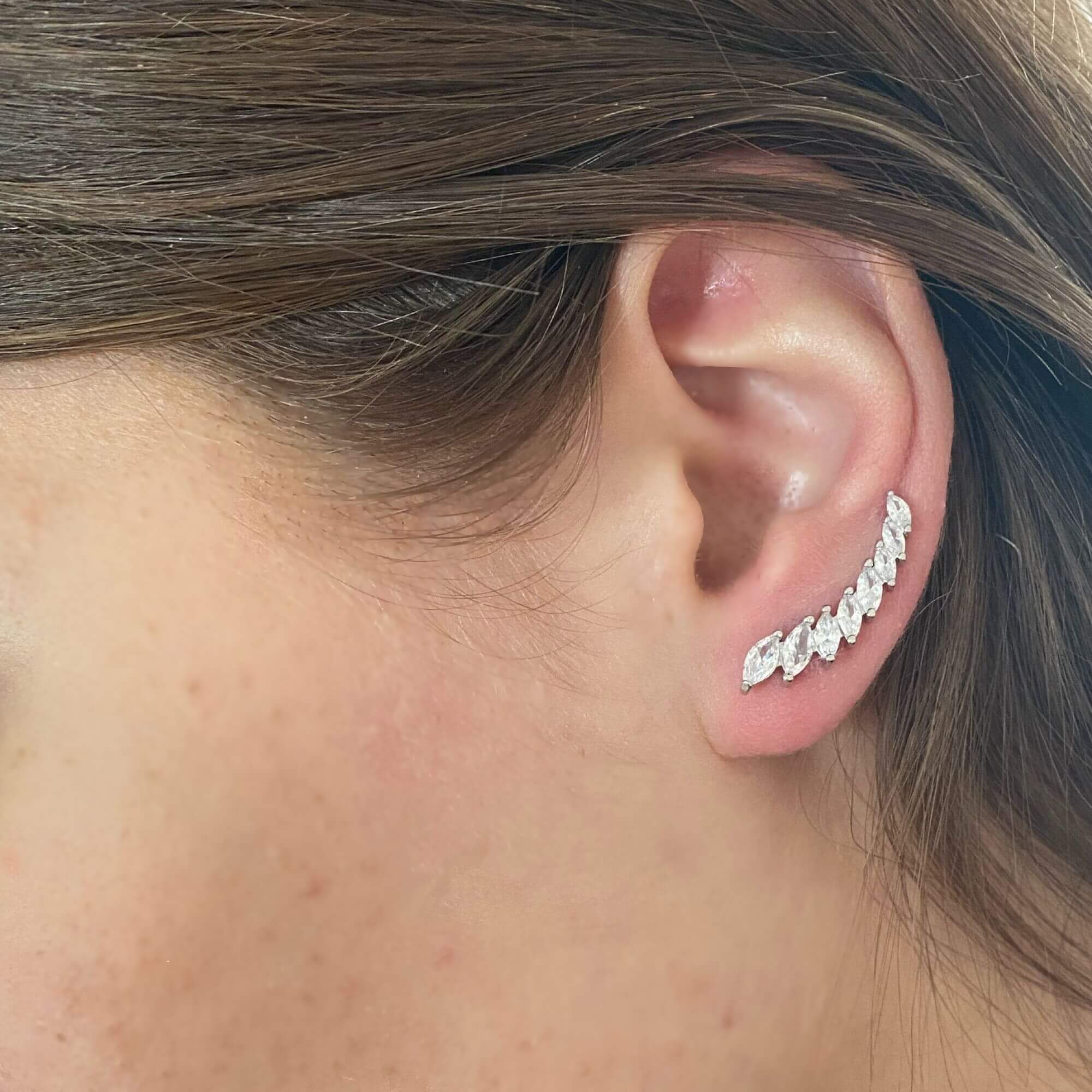Elegantie kent geen grenzen met deze glamoureuze zilveren oorklimoorbellen. Hun boeiende ontwerp stijgt sierlijk het oor op en schenkt onweerstaanbare pracht aan de drager. Deze oorbellen, een harmonieuze mix van verfijning en stijl, zijn voorbestemd om de kroon op je collectie te zijn en moeiteloos je allure naar een hoger niveau te tillen.