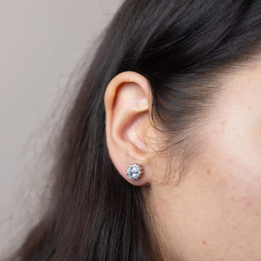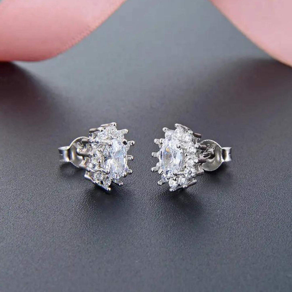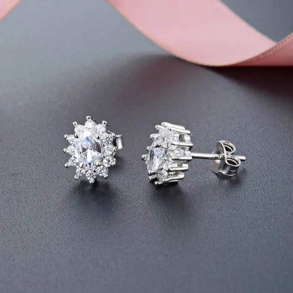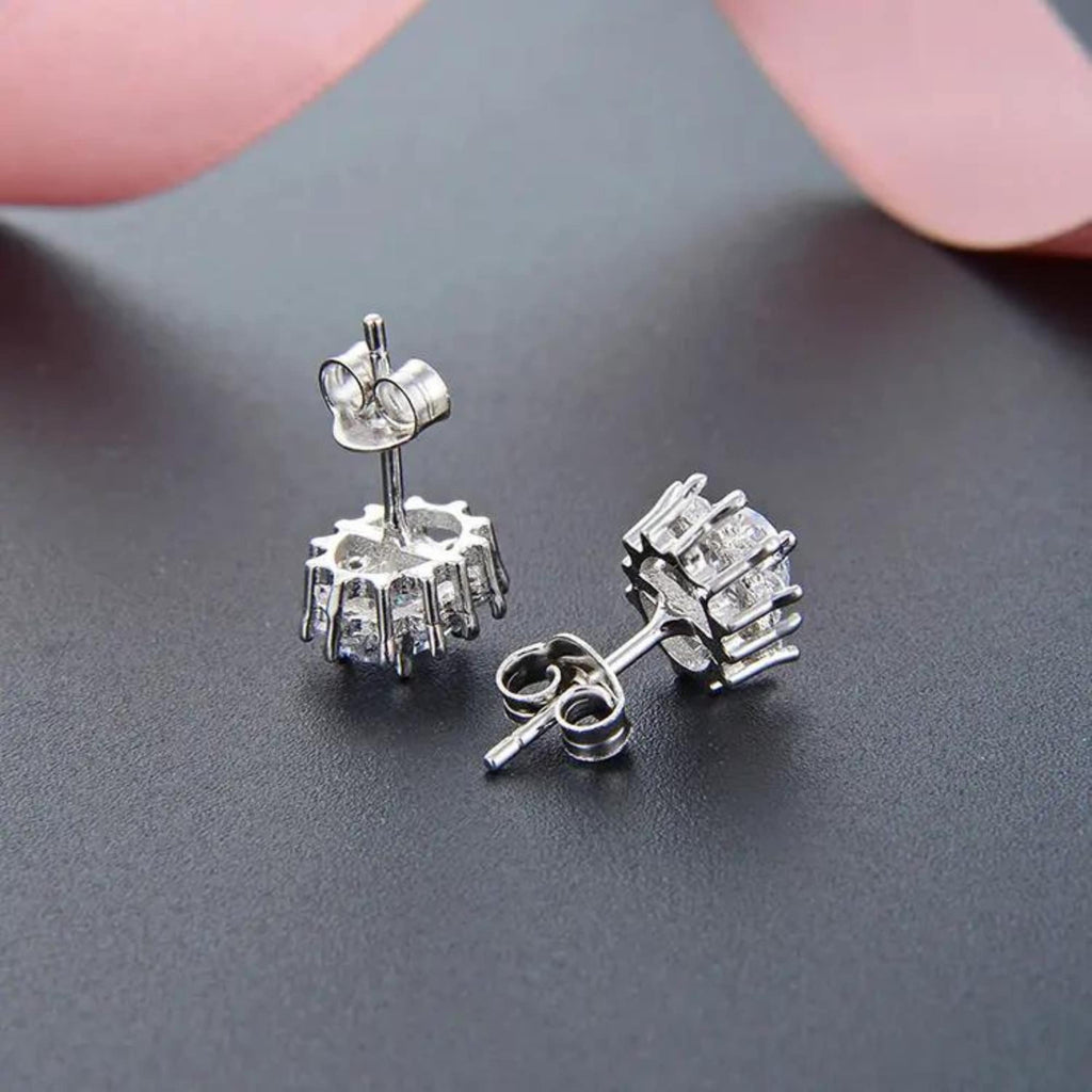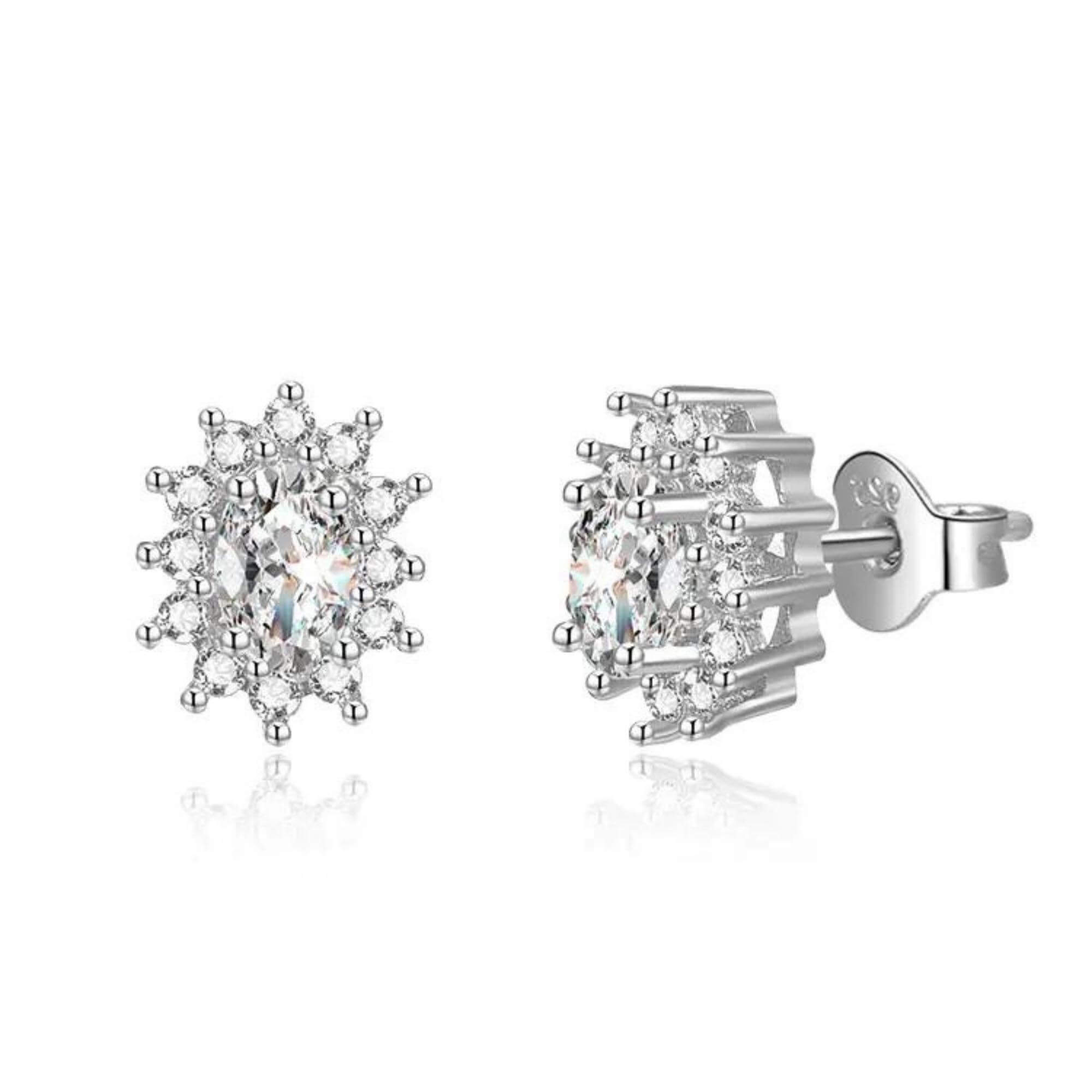 Deze sierlijke zilveren oorknopjes hebben een grote zirkonia in de kern, omringd door twaalf kleinere edelstenen die een zonnestraaleffect creëren. Dit ontwerp zorgt voor een gepolijste en stralende afwerking, waardoor ze een oogverblindende aanvulling zijn op elk ensemble. Perfect voor wie op zoek is naar een vleugje schittering in zijn sieraden.