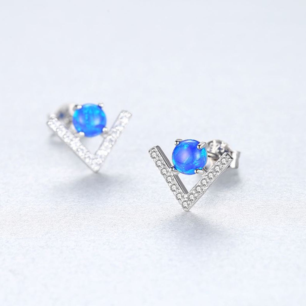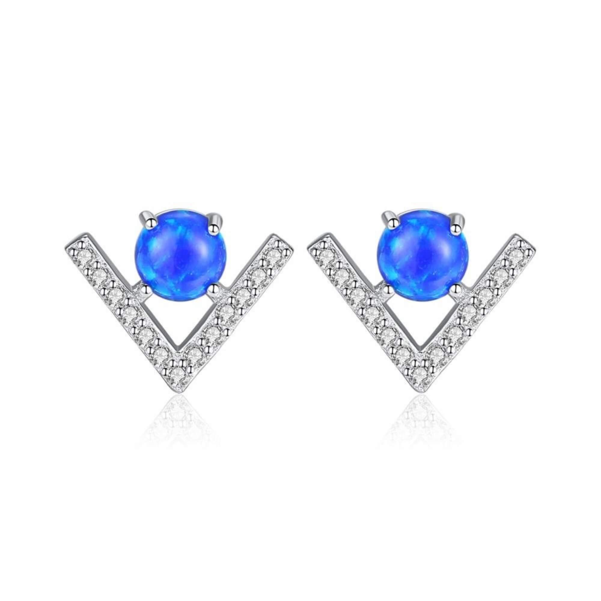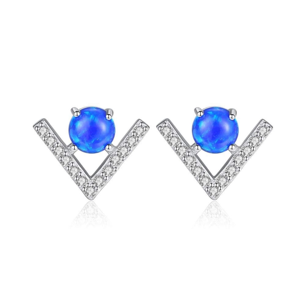 Verbeter je stijl met deze boeiende zilveren oorbellen die klassieke elegantie moeiteloos combineren met hedendaagse allure. De oogverblindende kristallen en het betoverende blauwe synthetische opaal vormen samen een ontwerp dat even uniek als elegant is. De V-vormige basis geeft een chique finishing touch aan deze veelzijdige en opvallende oorbellen.
