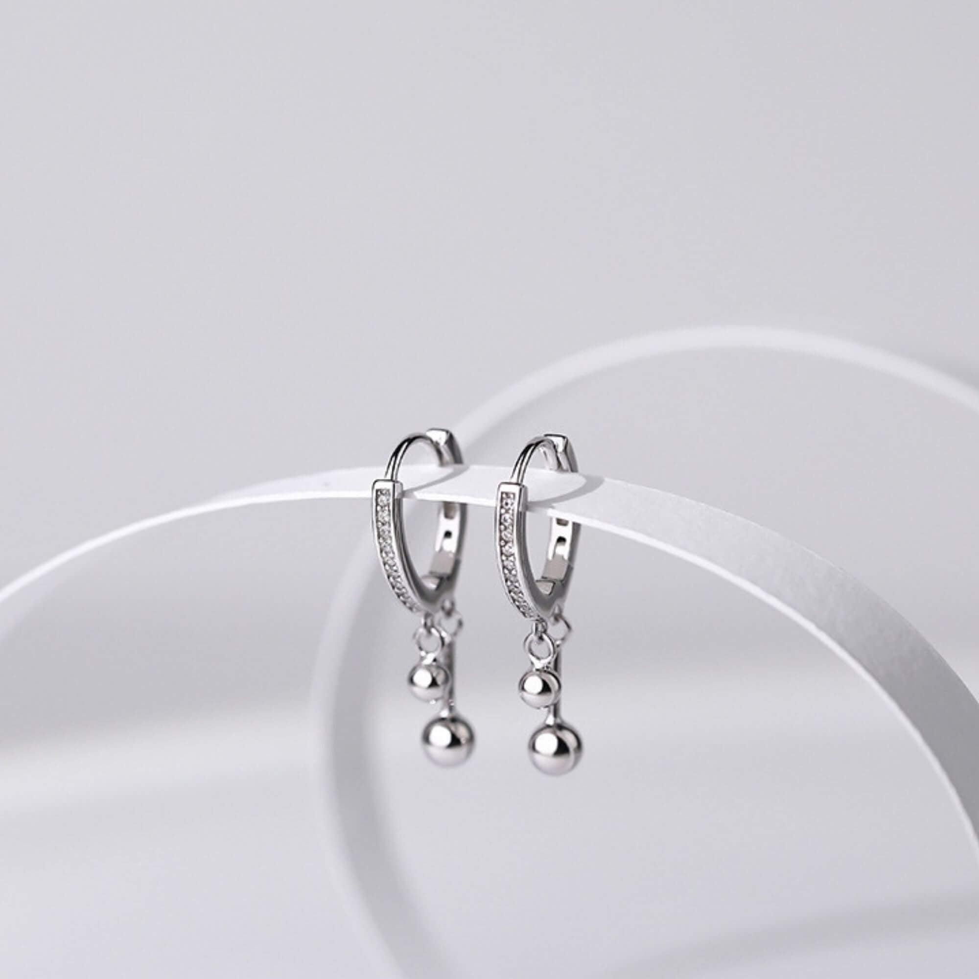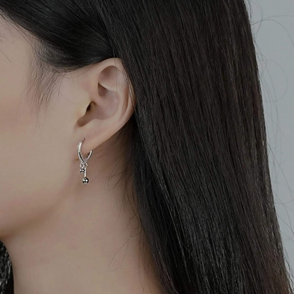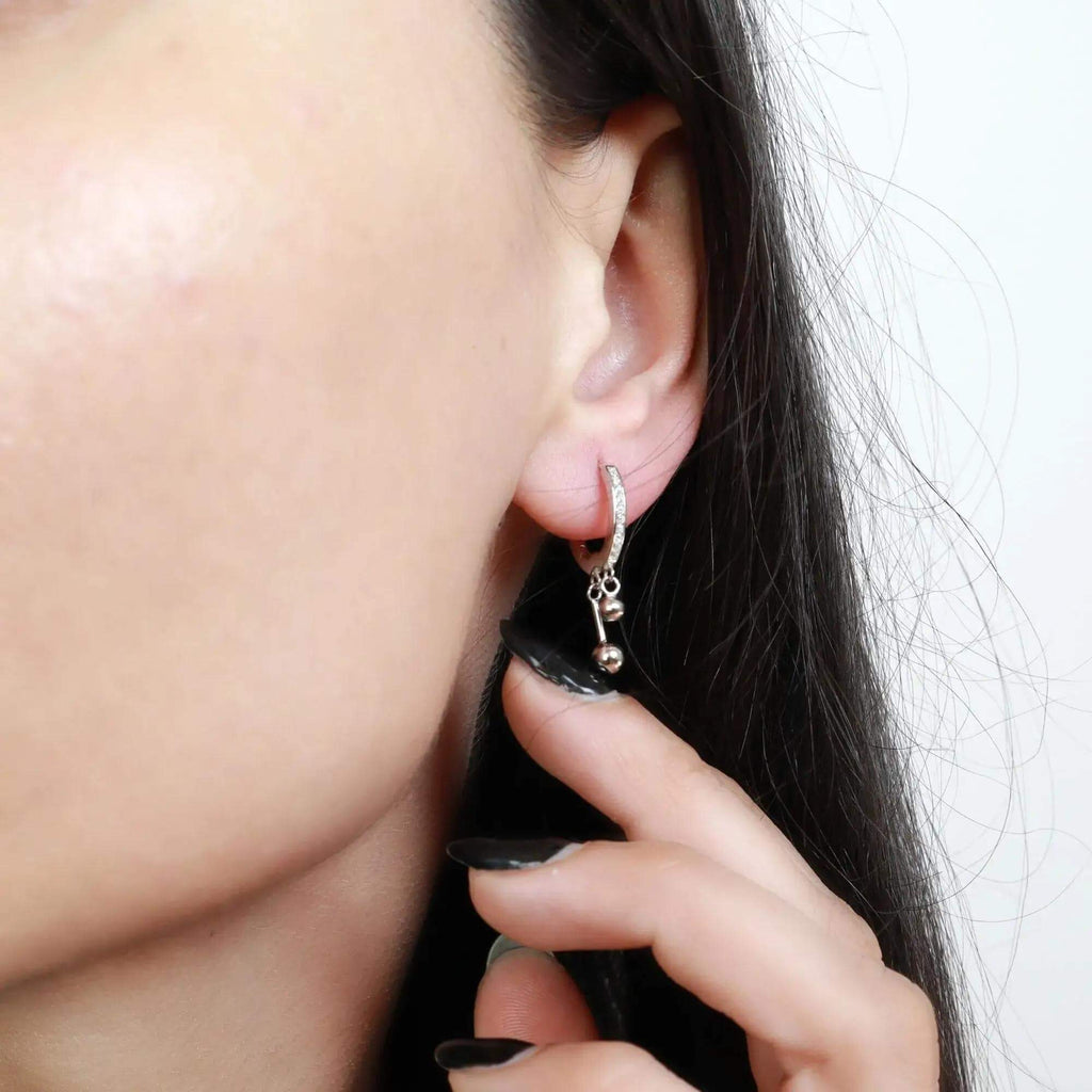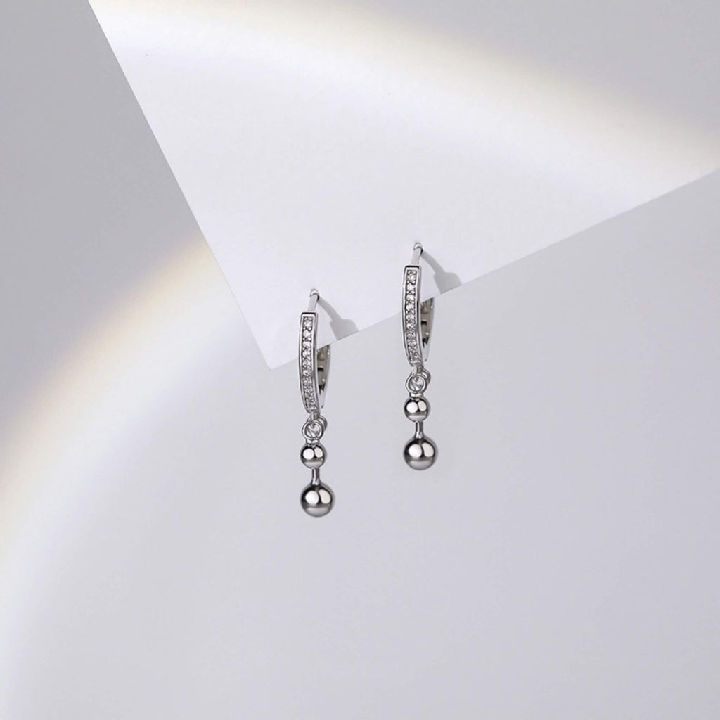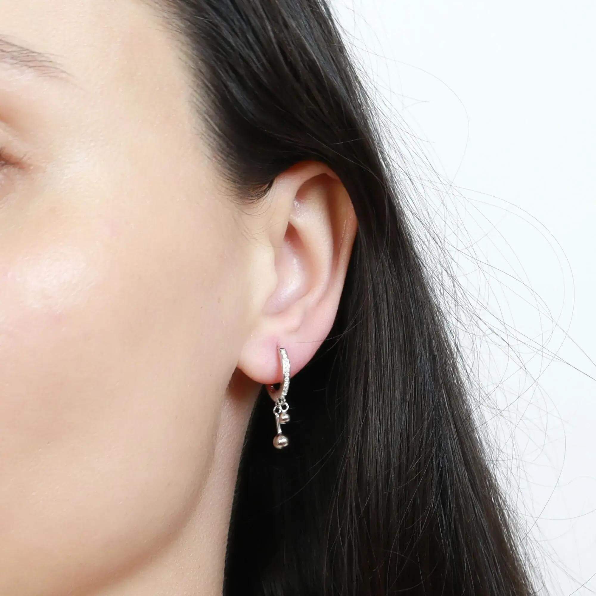 Omarm de allure van deze boeiende zilveren Huggie-oorringen, perfect voor alledaagse elegantie. Hun ingewikkelde ontwerp wordt geaccentueerd door een cirkel van fonkelende zirkoniastenen, waardoor elk moment een vleugje verfijning krijgt. De toegevoegde charme van aflopende kralen zorgt voor een unieke en onvergetelijke look, waardoor deze oorbellen een opvallende aanvulling zijn op elke outfit en zeker een blijvende indruk achterlaten.