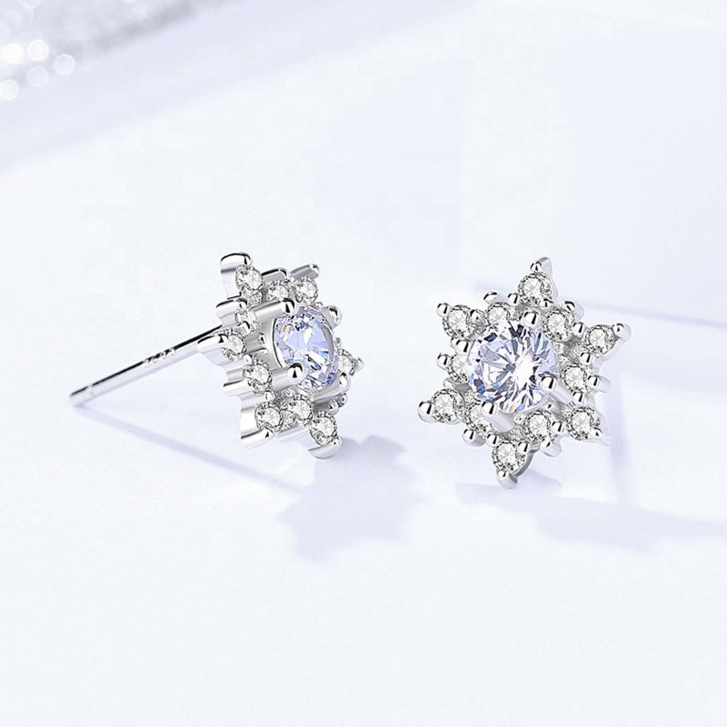 Omarm de betoverende charme van de winter met deze oorbellen, ontworpen in de vorm van stralende sneeuwvlokken. Ze glinsteren met zirkonia steentjes die het licht vangen bij elke beweging. Het ontwerp is een viering van eenvoud, maar de aantrekkingskracht is onweerstaanbaar boeiend en voegt een delicate gratie toe aan je dagelijkse vrijetijdskleding. Elke sneeuwvlok oorbel brengt een eerbetoon aan de ingewikkelde schoonheid van de kleinste wonderen der natuur, sprankelend als een verse sneeuwval onder de zachte gloed van de maan. Deze oorbellen vormen een schitterende finishing touch voor je casual outfit, en voegen een vleugje wintermagie toe aan je alledaagse look.