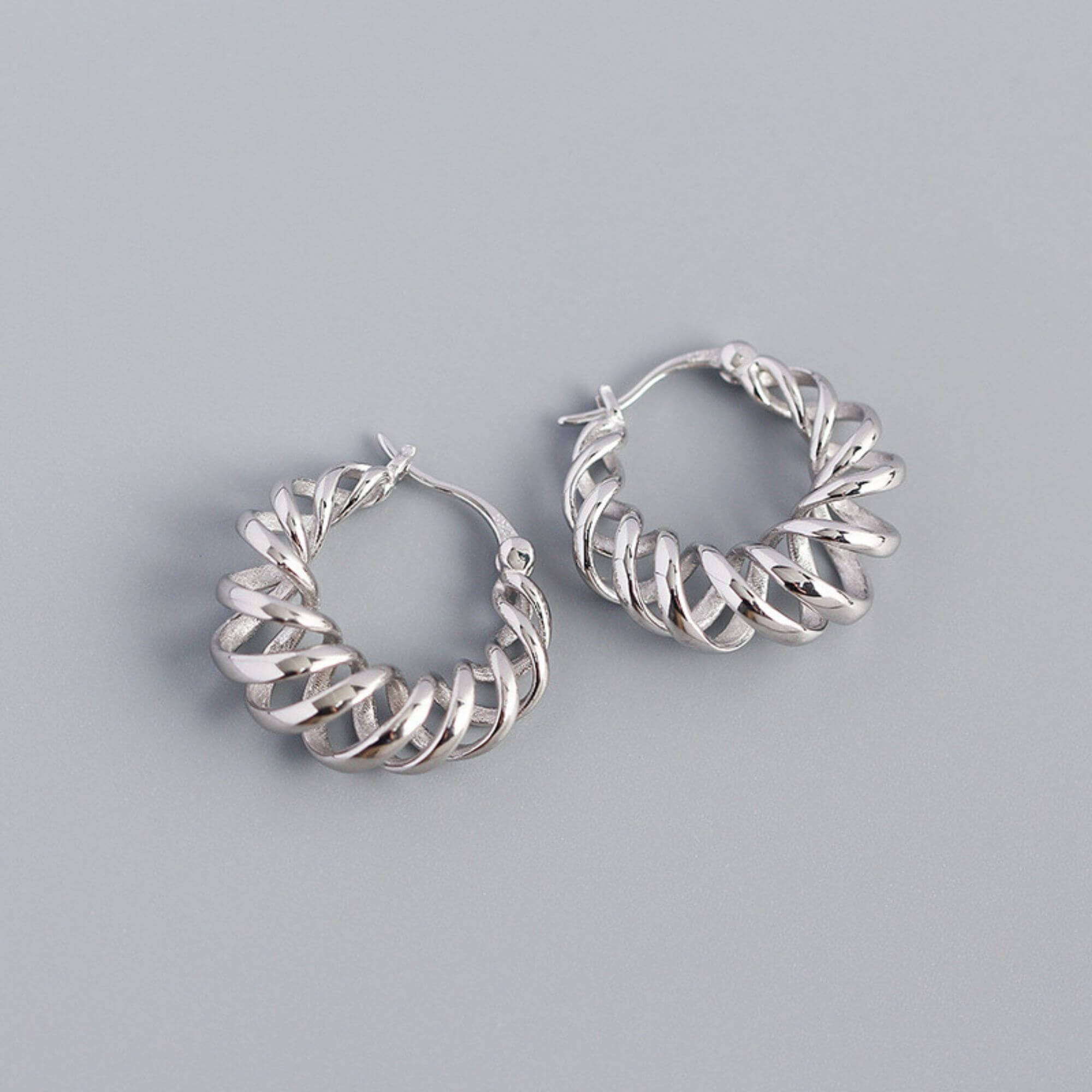 Ontdek de elegantie van eigentijds design met onze opvallende zilveren spiraaloorbellen. Hun kenmerkende silhouet siert sierlijk het oor en creëert een betoverende uitstraling die de aandacht opeist. Van gedurfde rondingen tot delicate ranken, ze zorgen voor een betoverend effect dat gegarandeerd een tweede look oplevert. Met een artistieke draai aan het spiraalvormige ontwerp vormen deze oorbellen een oogverblindende afwijking van het alledaagse.