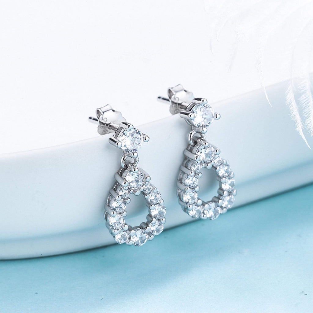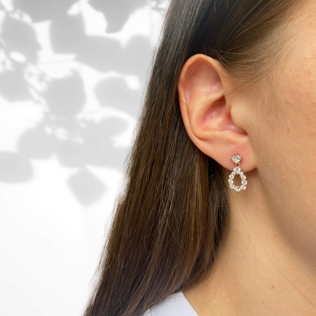 Deze zilveren oorbellen zijn met precisie vervaardigd en combineren een ingewikkeld ontwerp met opmerkelijk vakmanschap. De in elke oorbel ingebedde zirkoniastenen vormen een oogverblindend mozaïek, dat het licht opvangt en reflecteert in een betoverende dans. De sierlijk taps toelopende vorm voegt een vleugje verfijning toe en versterkt uw natuurlijke schoonheid met zijn verleidelijke aanwezigheid. De push-back sluiting zorgt voor comfort, terwijl de aflopende druppelvorm talloze complimenten belooft uit te nodigen.