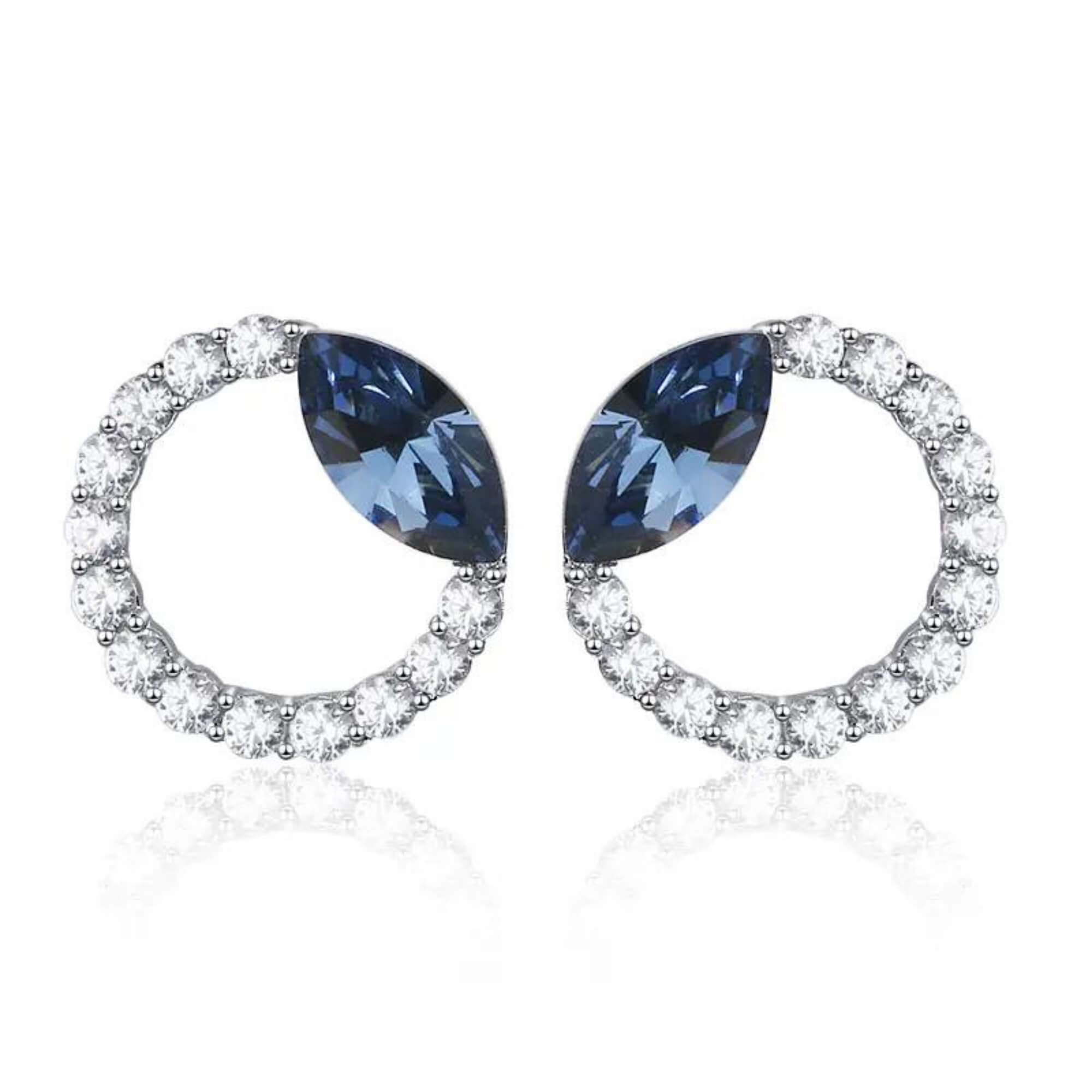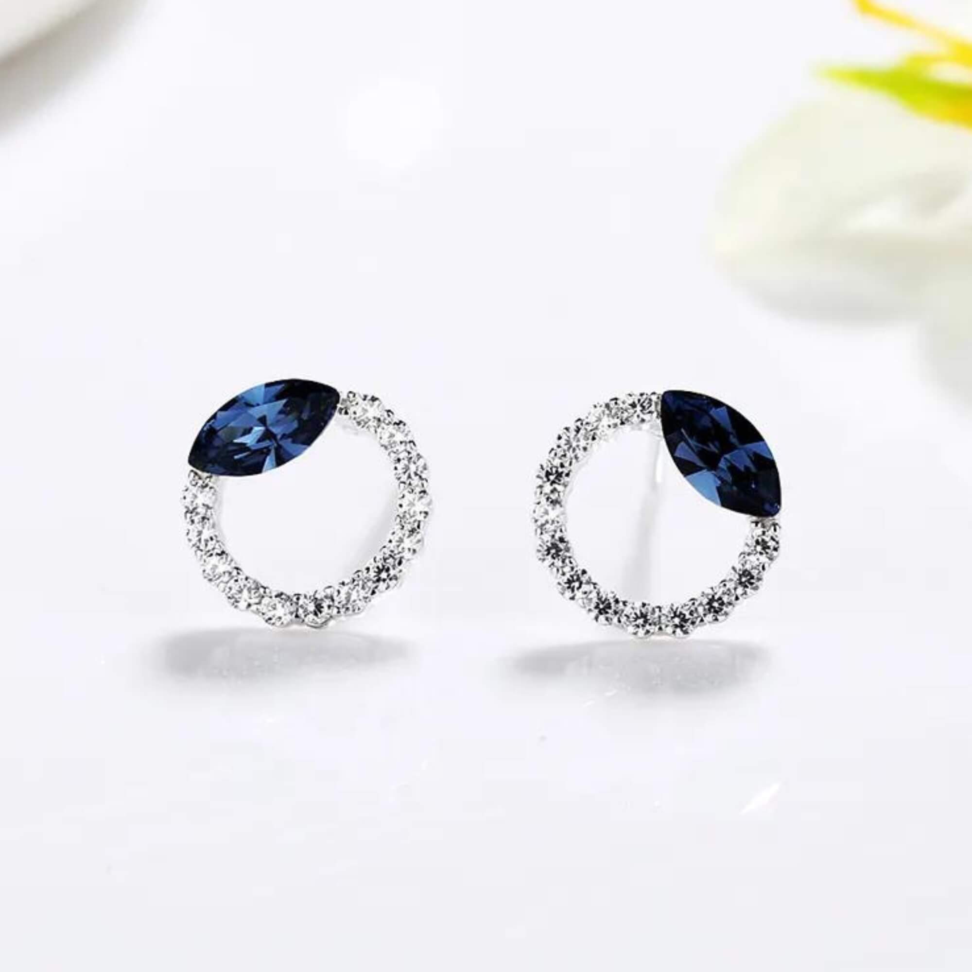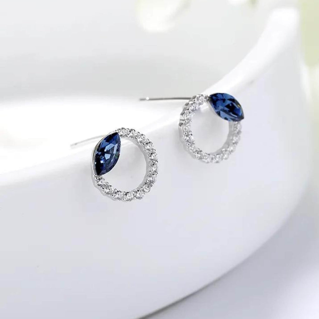 Voeg een vleugje elegantie toe aan je stijl met deze blauwe kristallen oorbellen, elk prachtig omlijst door kleine zirkonia steentjes. Ontworpen met comfort in gedachten, zijn ze lichtgewicht en voorzien van een veilige sluiting voor zorgeloos dragen. Deze betoverende oorbellen zijn een veelzijdige toevoeging aan je sieradencollectie, en versterken moeiteloos je look voor elke gelegenheid.