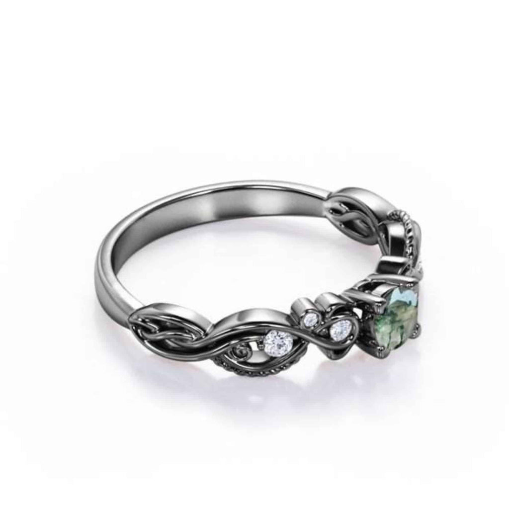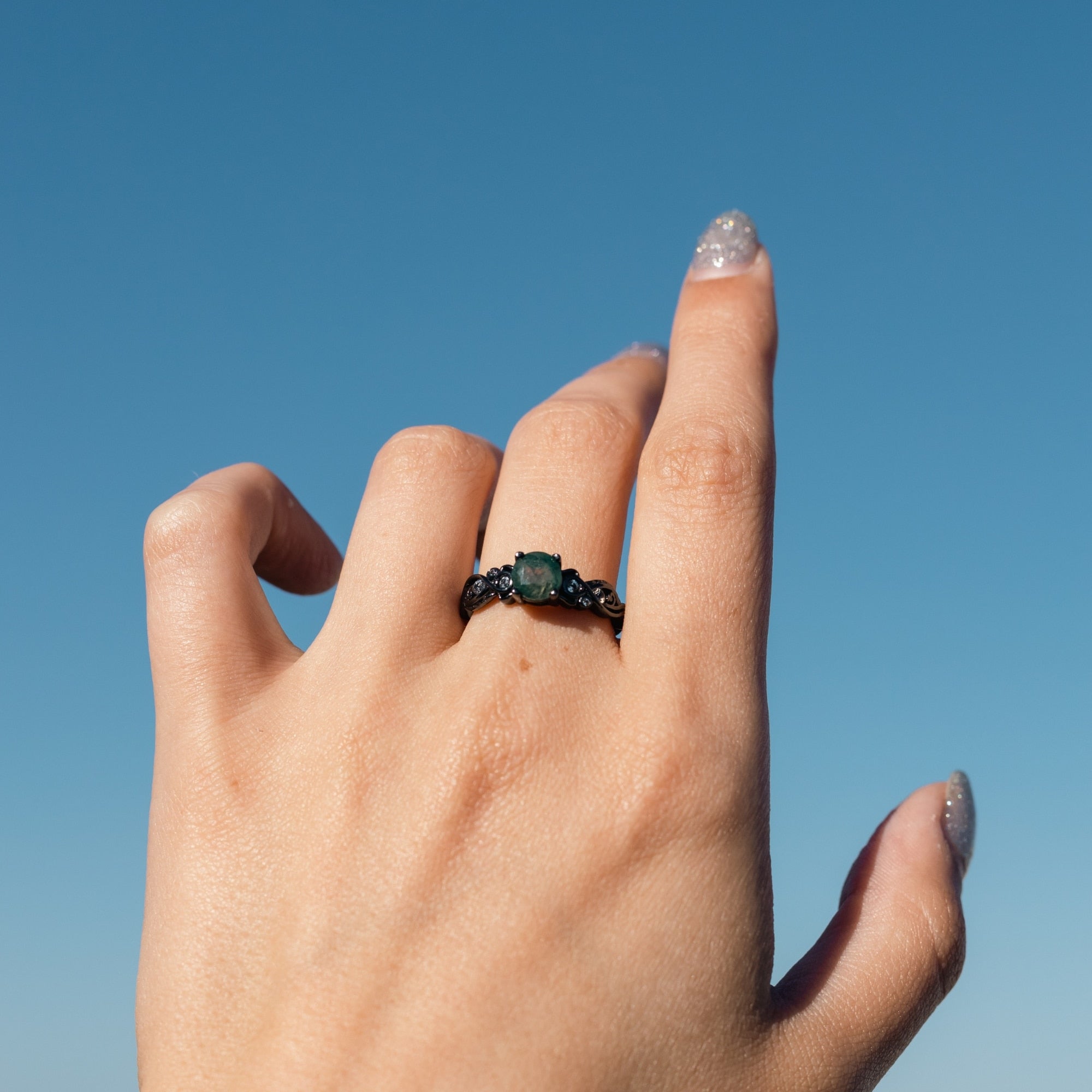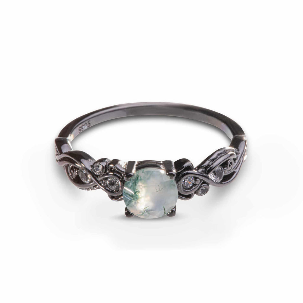 Zie de allure van onze zilveren ring met groene mosagaat, een stuk dat wordt gekenmerkt door zijn uniciteit en duurzaamheid. De opvallende zwarte rutheniumcoating is bestand tegen de ontberingen van dagelijks gebruik, terwijl de natuurlijke agaat fascineert met zijn ongeëvenaarde tinten. Een ring die bestemd is om de connaisseur met oog voor het buitengewone te betoveren.