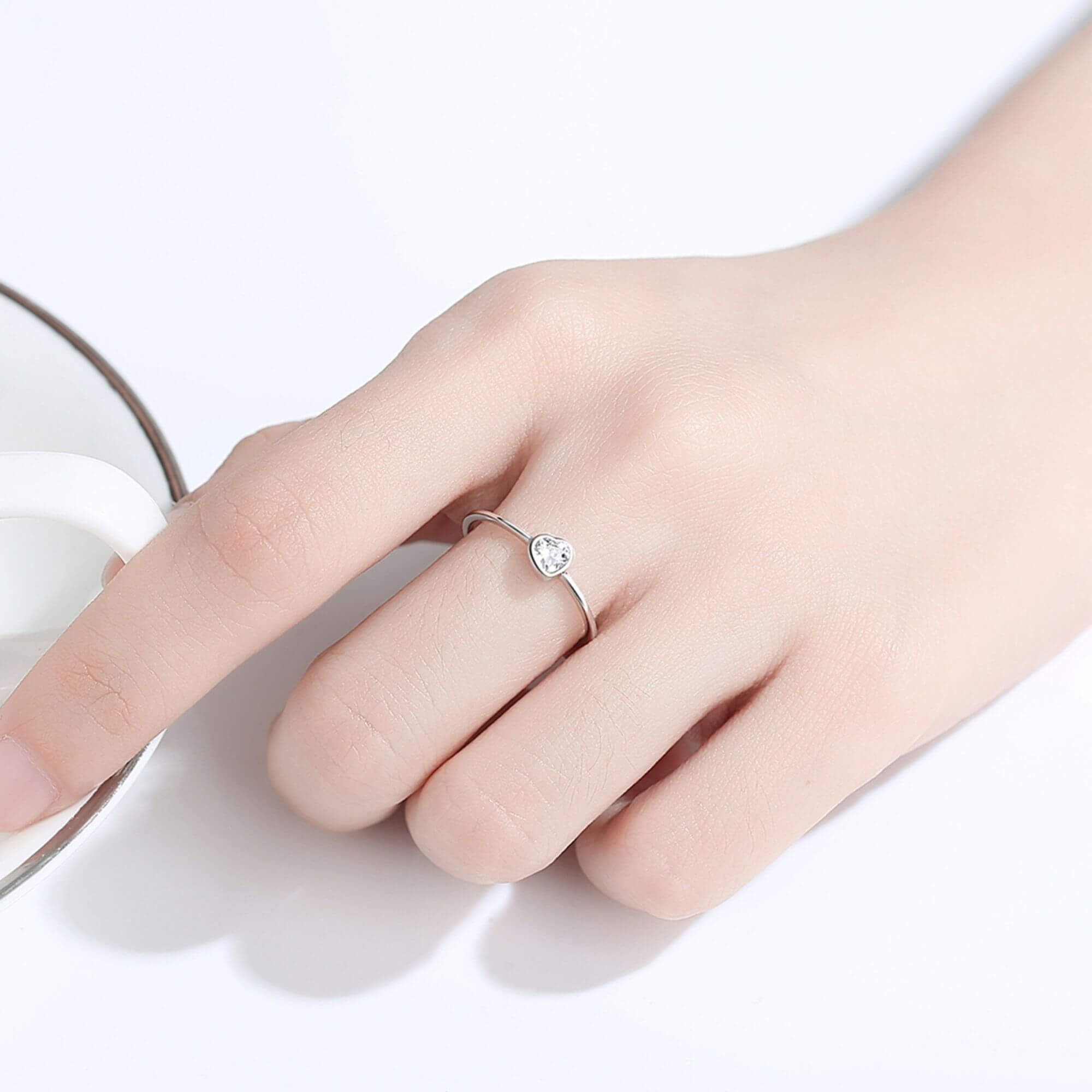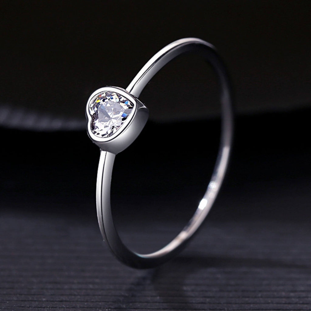 Een prachtige zilveren ring, versierd met een delicaat hartvormig element. Het sierlijke ontwerp maakt het een perfect cadeau voor het uiten van genegenheid en bewondering, een tijdloos symbool van liefde dat de tand des tijds zal doorstaan.