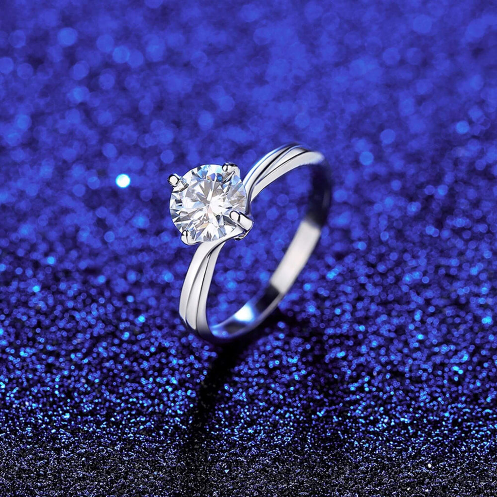 Voeg een vleugje blijvende gratie toe aan je collectie met deze prachtige zilveren ring. Gecentreerd met een lichtgevende één-karaats Moissanite, is het een voorbeeld van de tijdloze elegantie die gezocht wordt in fijne sieraden. Perfect voor wie houdt van klassieke schoonheid met een moderne twist.