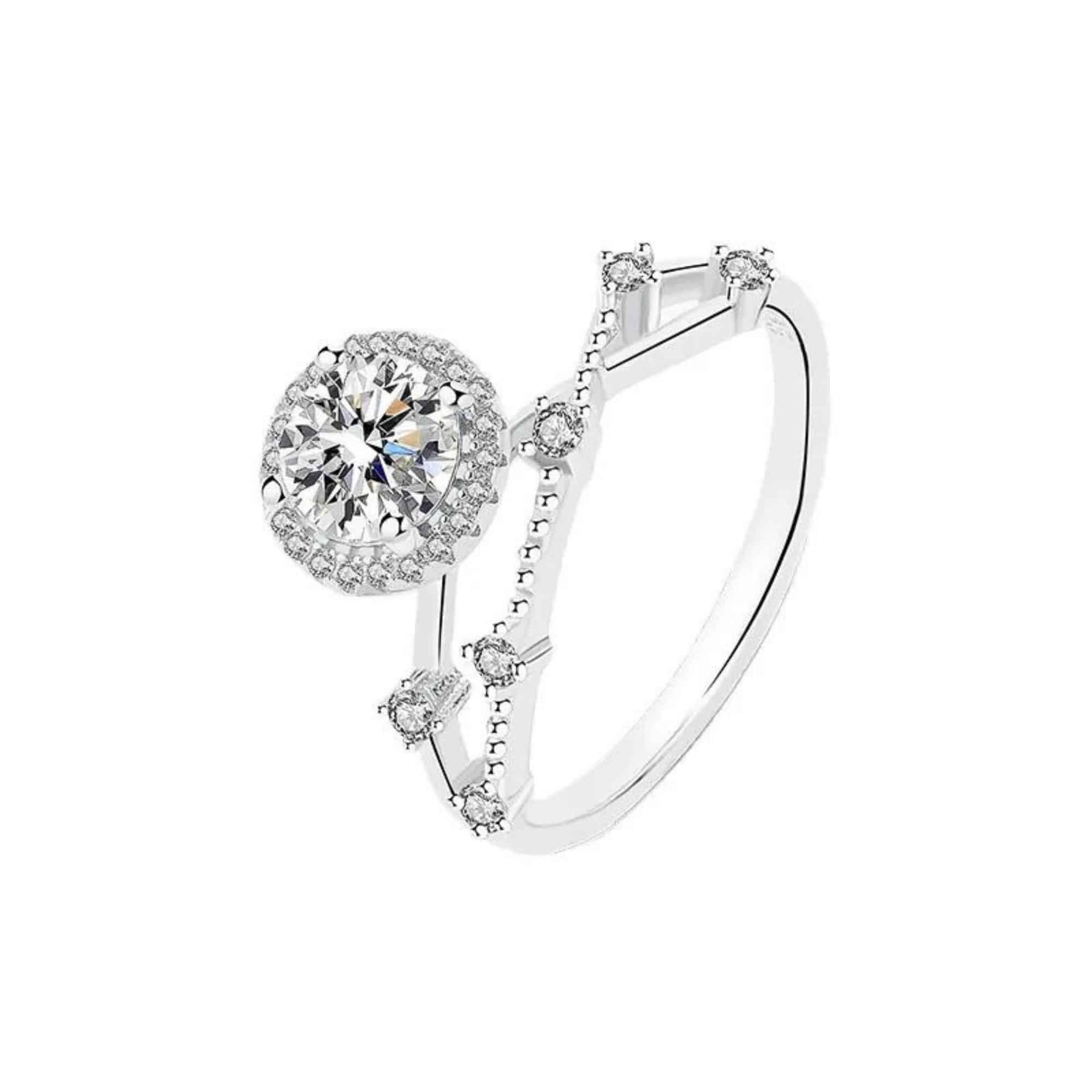 Duik in het rijk van verfijnde eenvoud met deze prachtige zilveren ring. Het strakke ontwerp wordt versterkt door de stralende glans van zorgvuldig geselecteerde stenen, waardoor een spektakel van licht en elegantie ontstaat. Een stuk dat echt resoneert met de essentie van hedendaagse glamour, het is een must-have voor iedereen die op zoek is naar een mix van subtiliteit en glans.