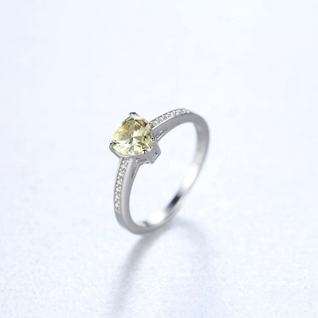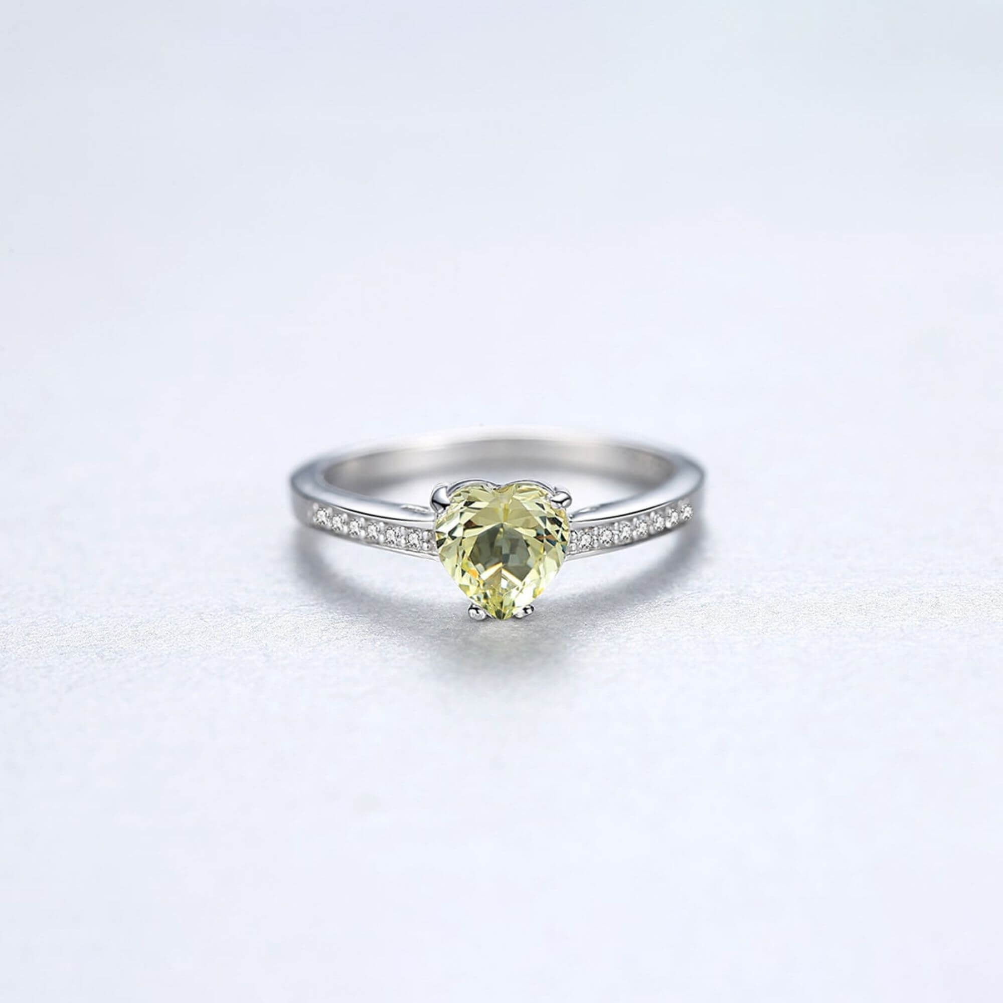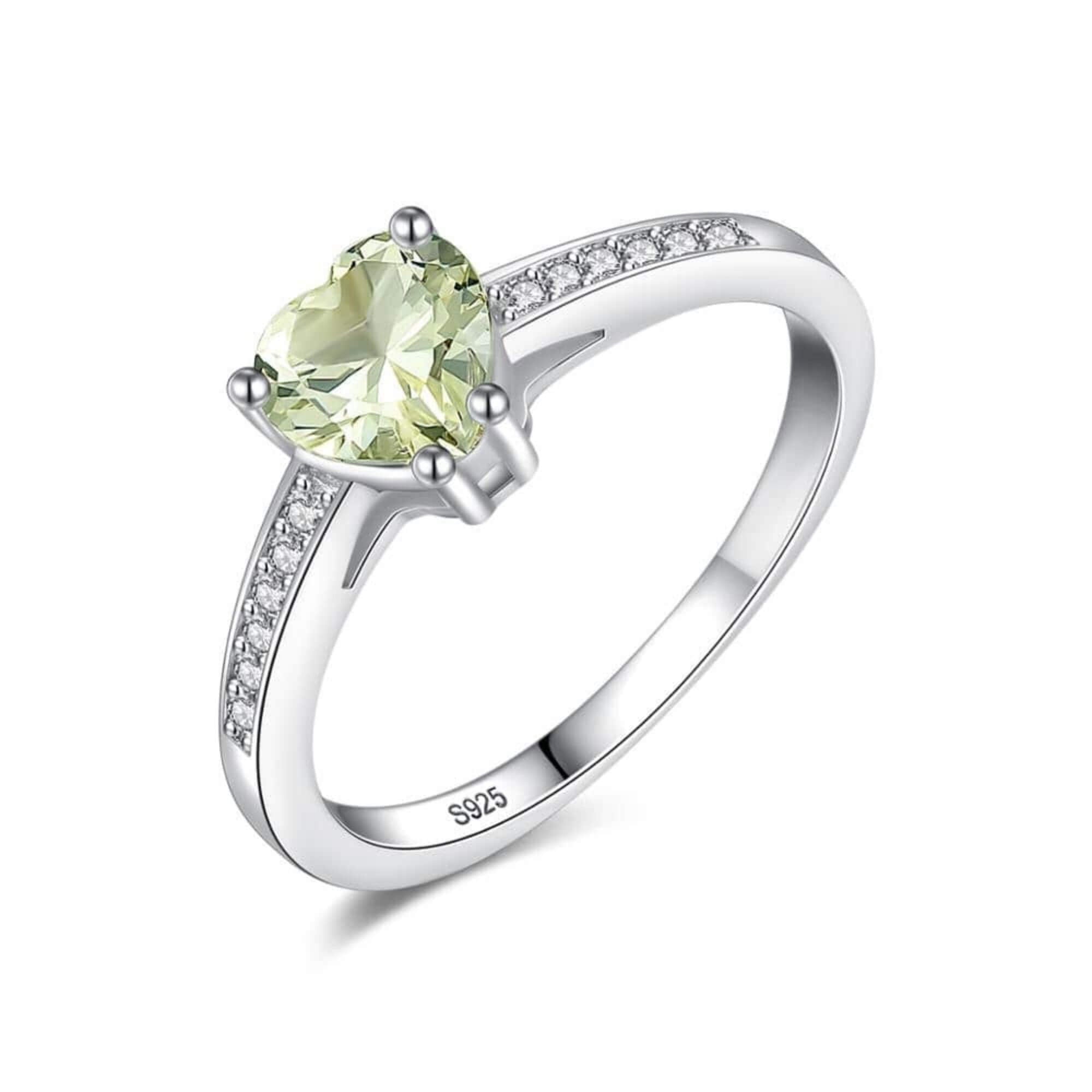 Word verliefd op de romantische charme van onze zilveren ring, voorzien van een hartvormige zirkonia in een zachte lichtgroene tint. De fascinerende kleur en hartvorm symboliseren liefde en genegenheid en vormen een statement van romantiek. De ring is verder verfraaid met sierlijk aflopende stenen aan de basis, wat een extra laagje allure toevoegt.