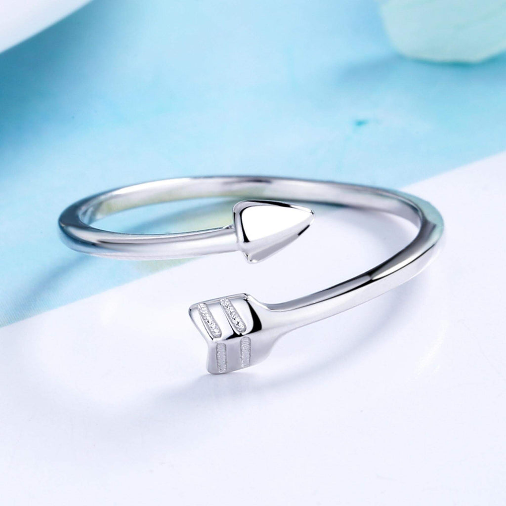 Betreed het rijk van minimalistische elegantie met onze zilveren pijlvormige ring. Het open ontwerp biedt niet alleen een veelzijdige look die naadloos in elke stijl past, maar biedt ook het extra voordeel van een comfortabele, verstelbare pasvorm. Deze ring is een subtiel maar stijlvol statement, perfect voor degenen die de schoonheid van eenvoud waarderen en op zoek zijn naar een stuk dat harmonieert met zowel alledaagse als statement-sieraden.