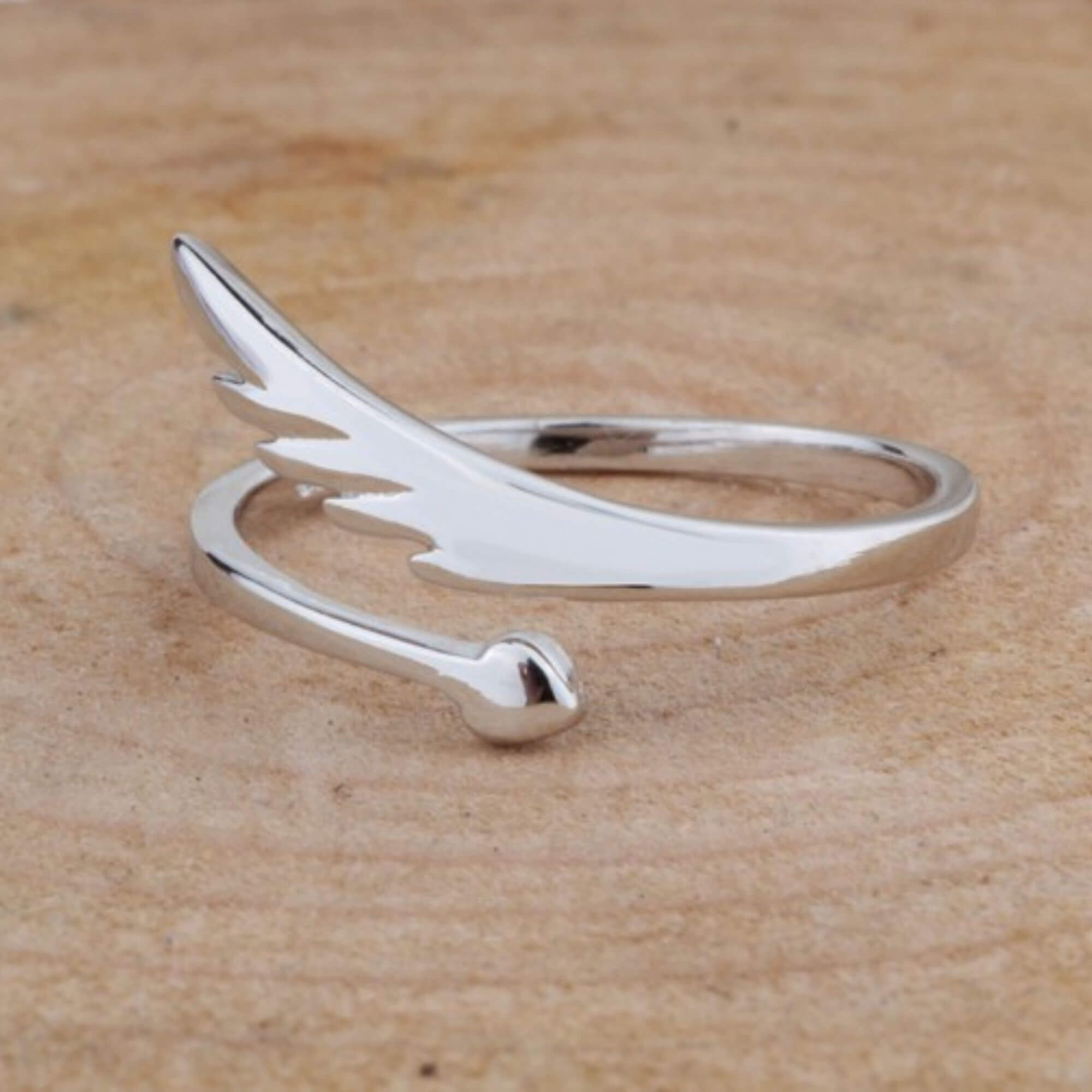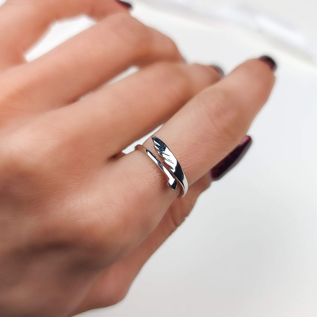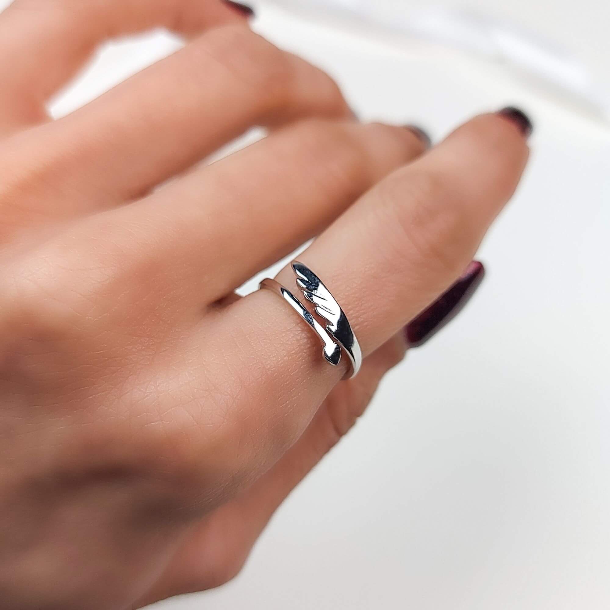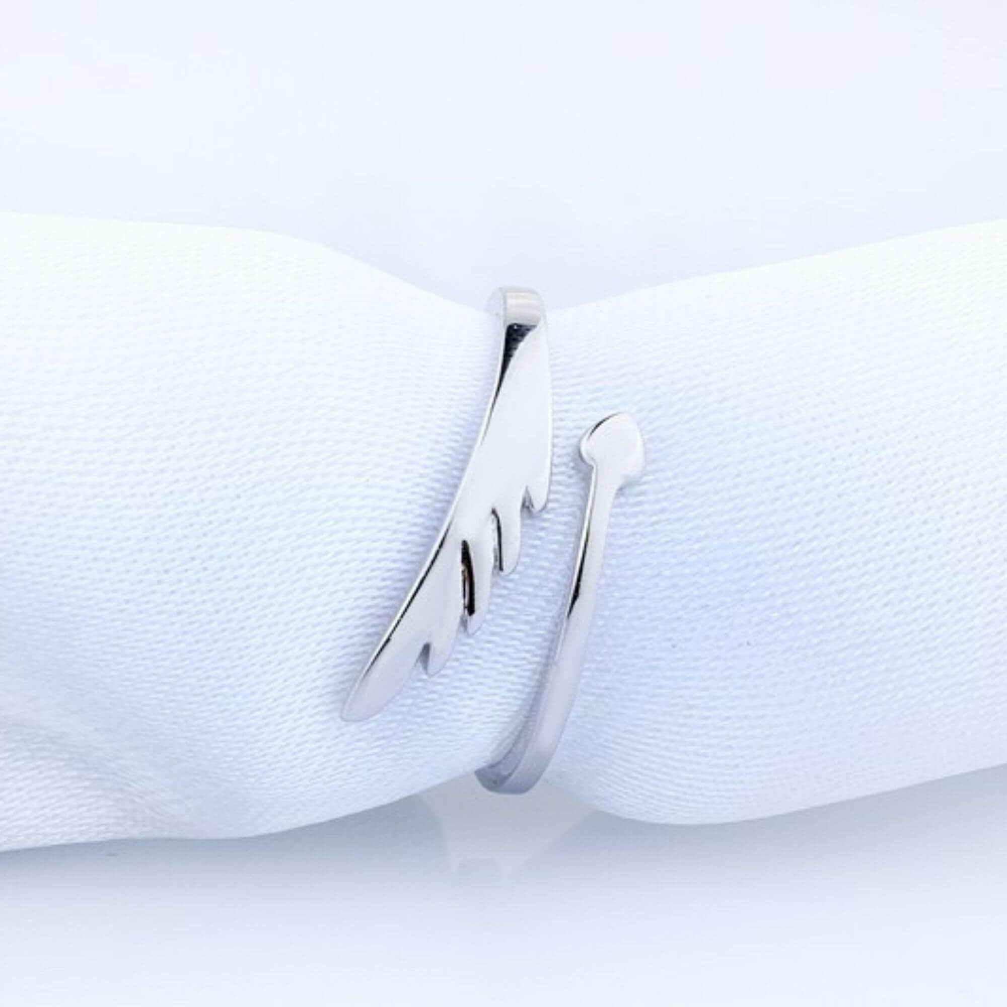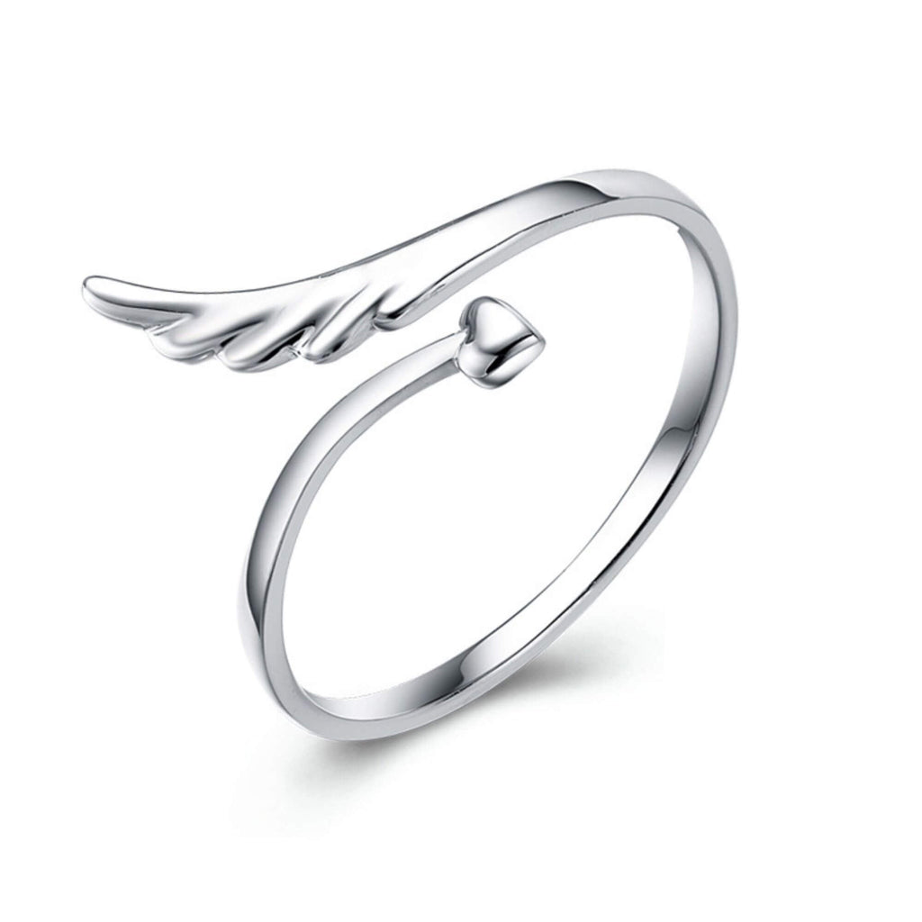 Uitstekend vervaardigd in sterling zilver, deze ring verweeft sierlijk een hart en een engelenvleugel, die bescherming en liefde symboliseren. Het open en gestroomlijnde ontwerp zorgt voor veelzijdige maatvoering en vult moeiteloos elke outfit aan, waardoor het zowel een uitspraak van stijl als van gevoel is.