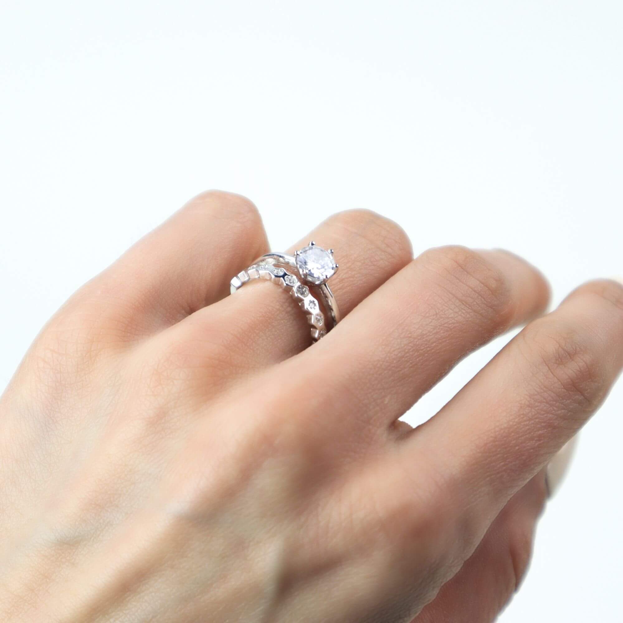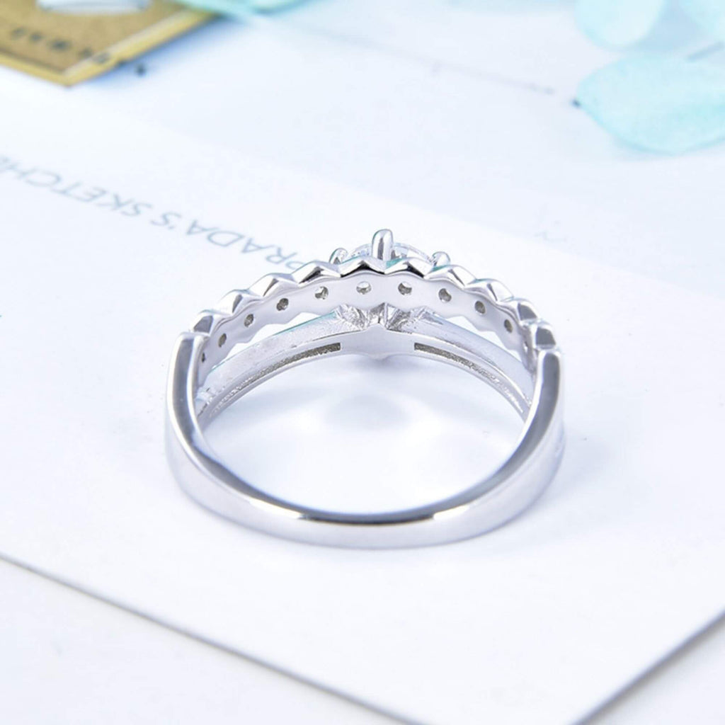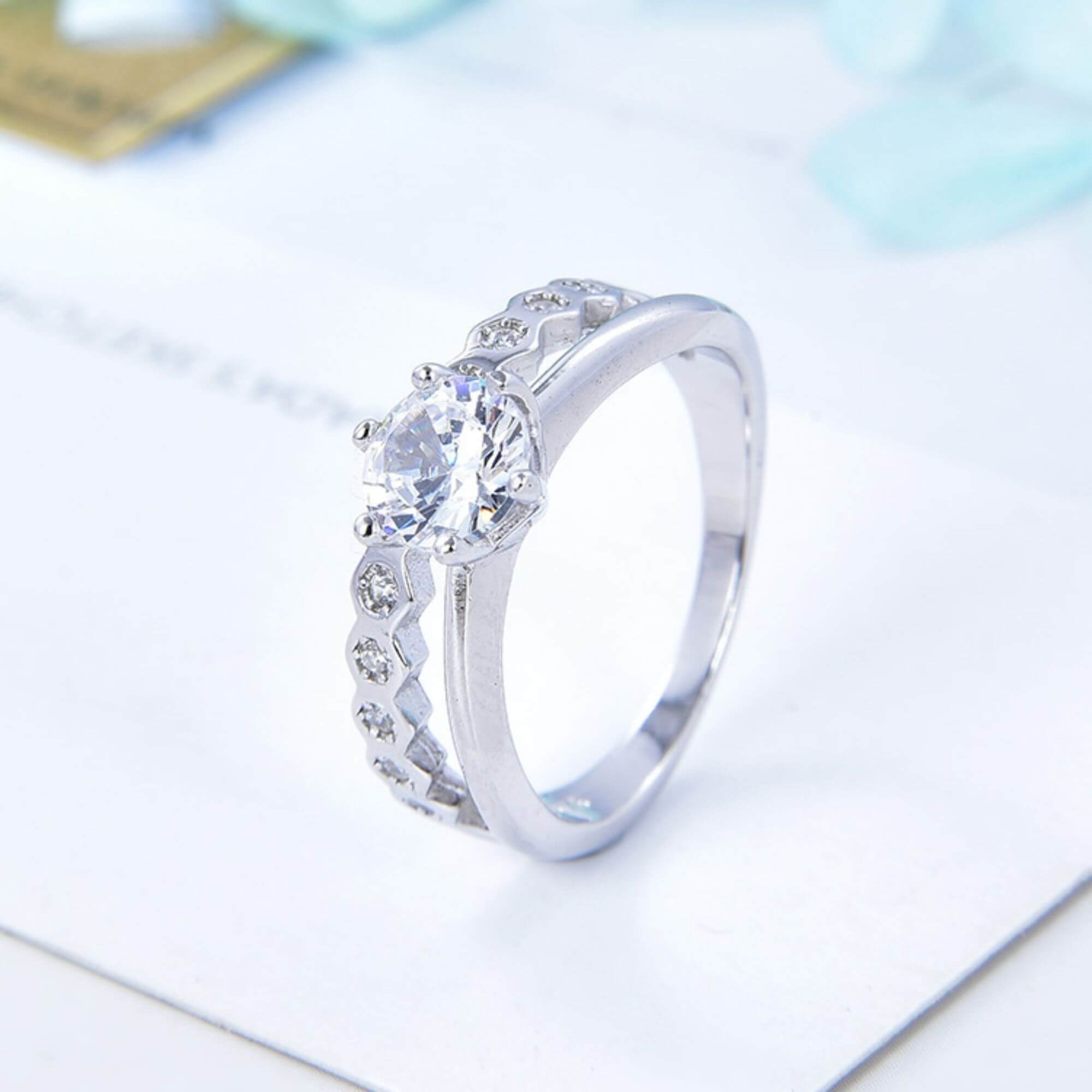 Verdiep je in het intrigerende ontwerp van deze zilveren ring, waarbij een grote zirkoniasteen aan de ene kant een dans van licht en schaduw creëert en kleinere stenen aan de andere kant. Dit fantasierijke stuk wekt de illusie van twee perfect bij elkaar passende ringen, waardoor een element van mysterie en fascinatie aan het algehele uiterlijk wordt toegevoegd.