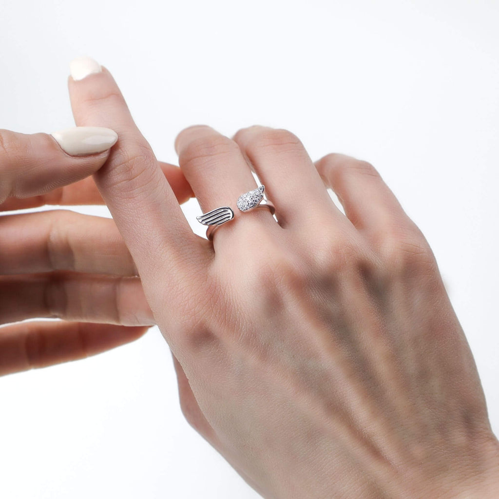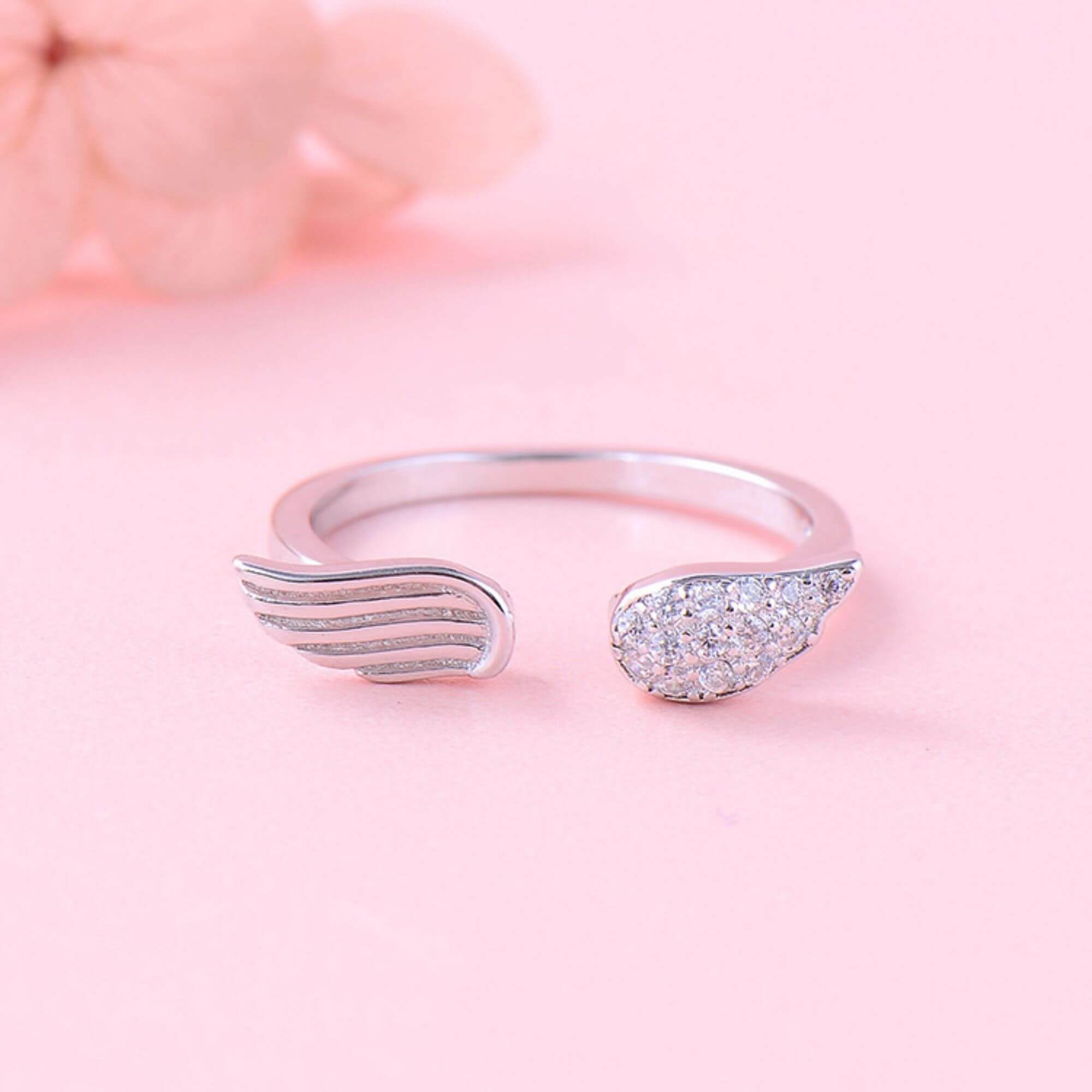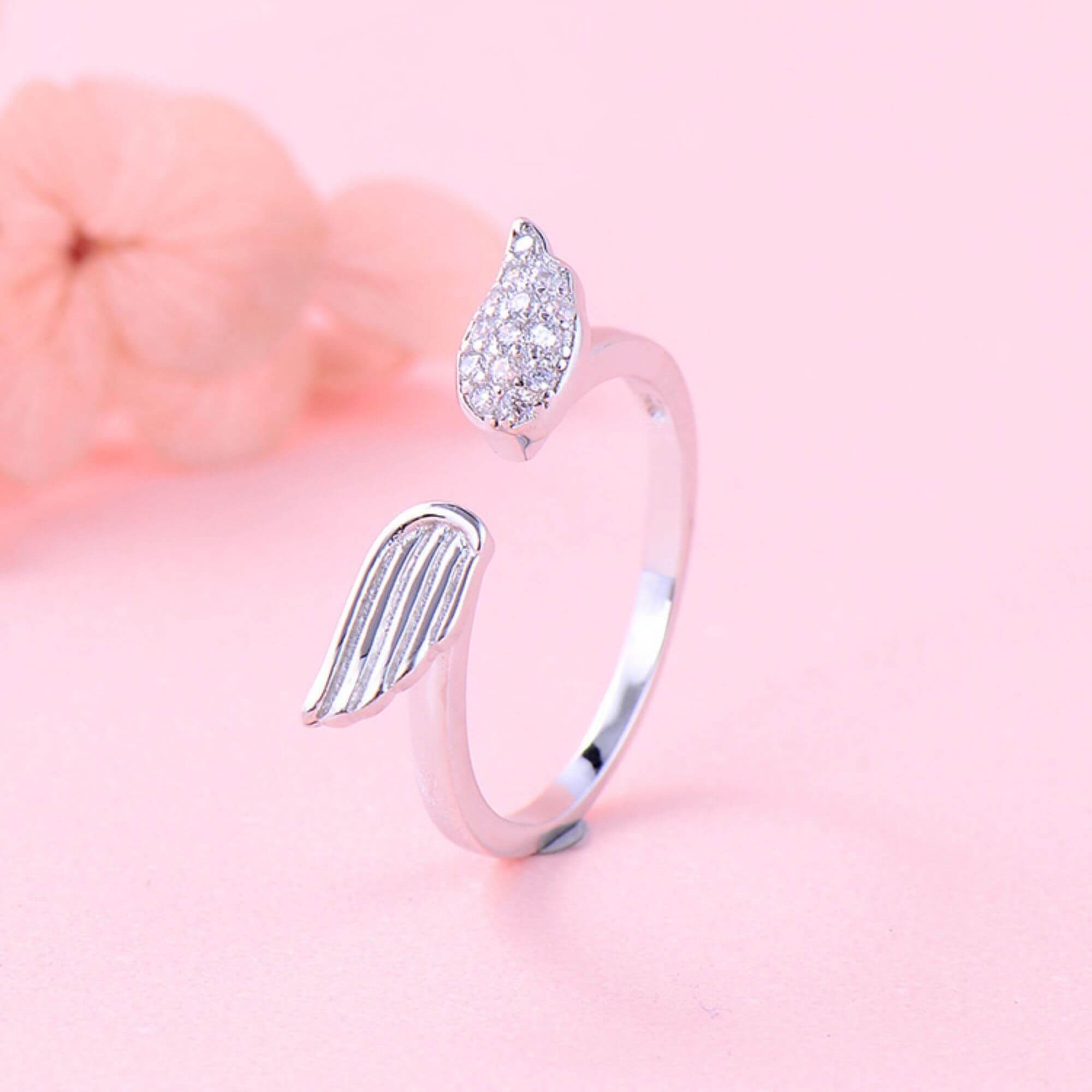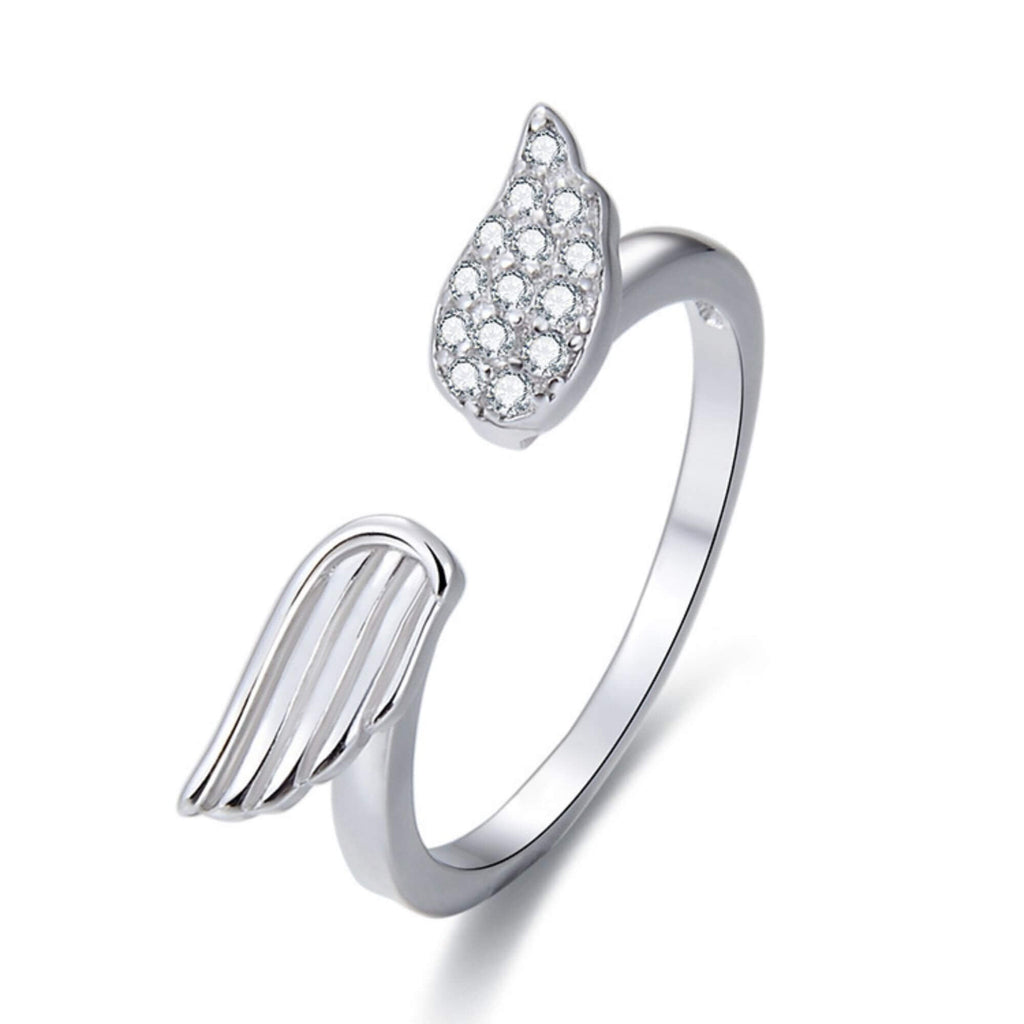 Omarm de symboliek van engelenvleugels met deze prachtige zilveren ring. Het ingewikkelde ontwerp vertegenwoordigt vrijheid, bescherming en zuiverheid. Hoewel de binnendiameter 18 mm bedraagt, maakt het open ontwerp een kleine aanpassing mogelijk, waardoor een comfortabele pasvorm wordt gegarandeerd.
