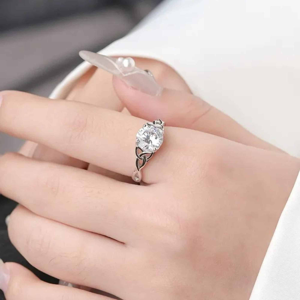 Delicate zilveren ring met een betoverende moissanite edelsteen in een ronde slijpvorm. Deze harmonieuze mix belichaamt klassieke elegantie doordrenkt met innovatieve charme die doet denken aan de sierlijke lotusbloem en belooft een vleugje frisheid in elke look te brengen.